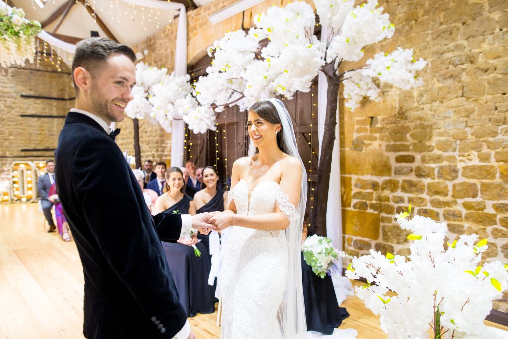 After a vintage car ride over the The Barns, Kieran was waiting for his bride to be at the top of the aisle. More tears flowed – from Kieran this time – as Laura made her way towards her future husband before tying the knot and heading back outside for the confetti run.